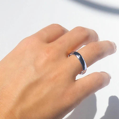 Alianza de Boda Media Caña en Oro Blanco Pulido de 4 mm con Diamante