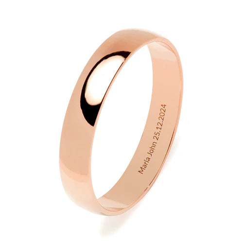 Alianza de Boda Media Caña en Oro Rosa Pulido de 4 mm