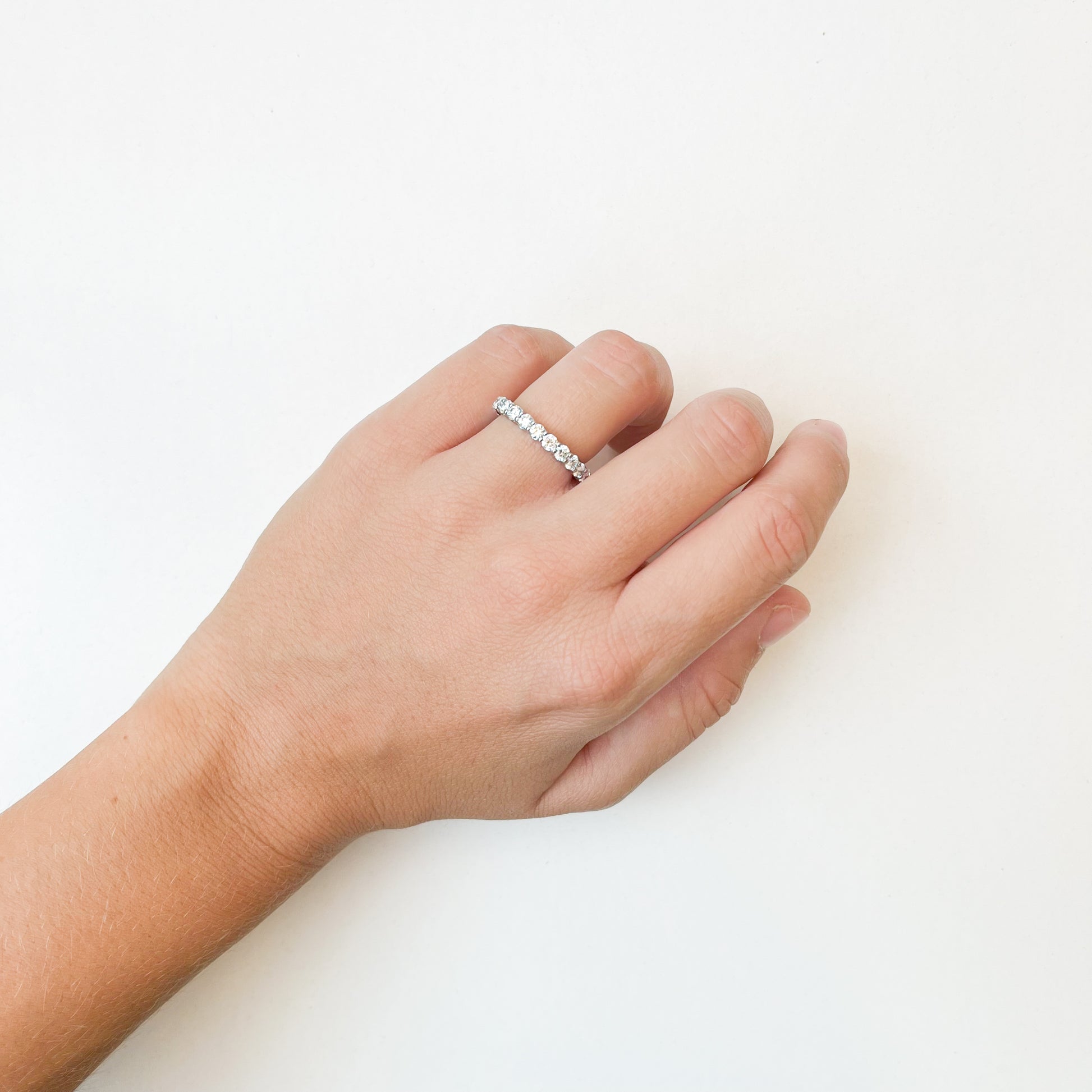 Deslumbra con esta impresionante alianza entera. Con 23 diamantes que suman 2.11 ct (H-SI) engastados en platino de alta calidad, ofrece un brillo excepcional y duradero. Su diseño de diamantes a lo largo de toda la alianza la convierte en una elección perfecta para bodas, aniversarios o como símbolo de amor eterno.