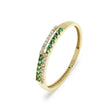 Anillo con 2 líneas de Circonitas esmeralda y blancas, Elaborada en Oro Amarillo de 9 Kilates.