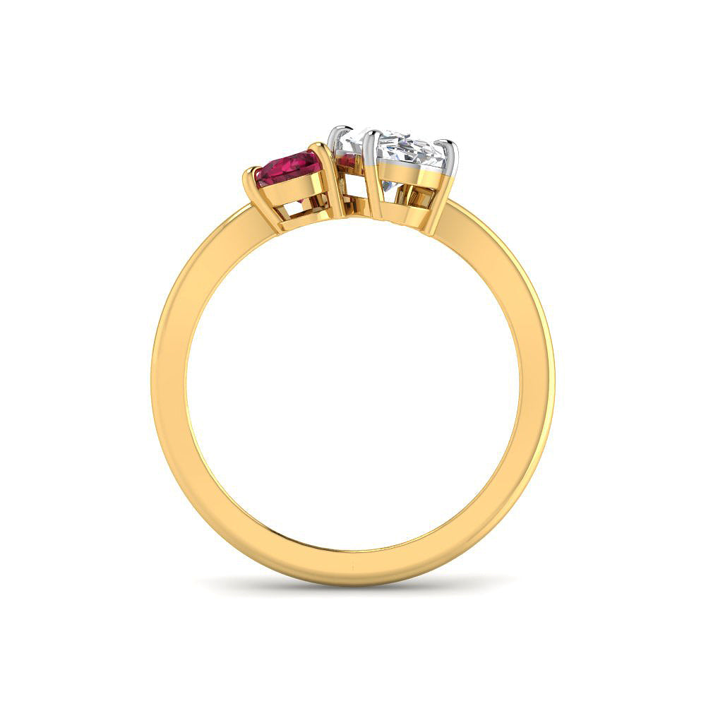 Anillo Gota Rubí 0.57 y Diamante Creado Oval 0.71 Quilates en Vermeil