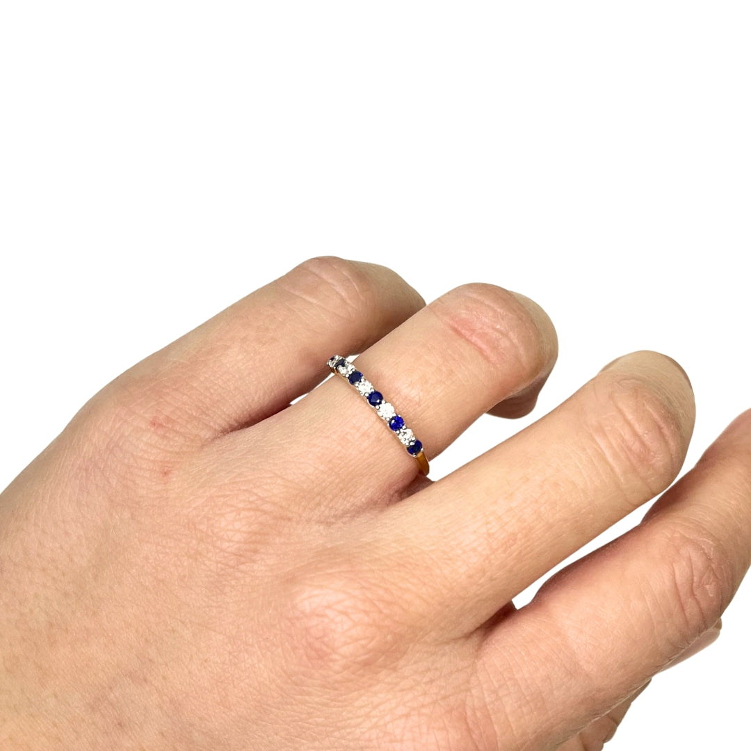 Anillo Media Alianza Zafiros y Diamantes Creados 0.18 Quilates en Vermeil