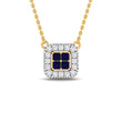 Cadena y Colgante Cuadrado Zafiro con 16 Diamantes Creados 0.18 en Vermeil