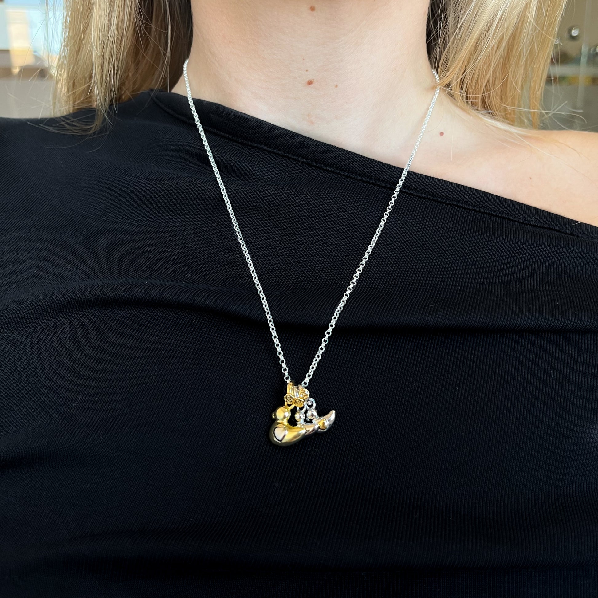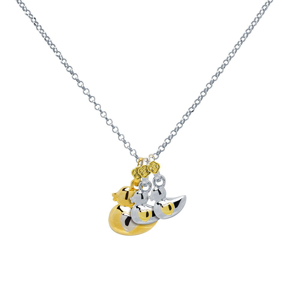 Este pack incluye colgantes de mamá pato y 2 patitos, además de la cadena para lucirlos juntos con ternura y estilo.