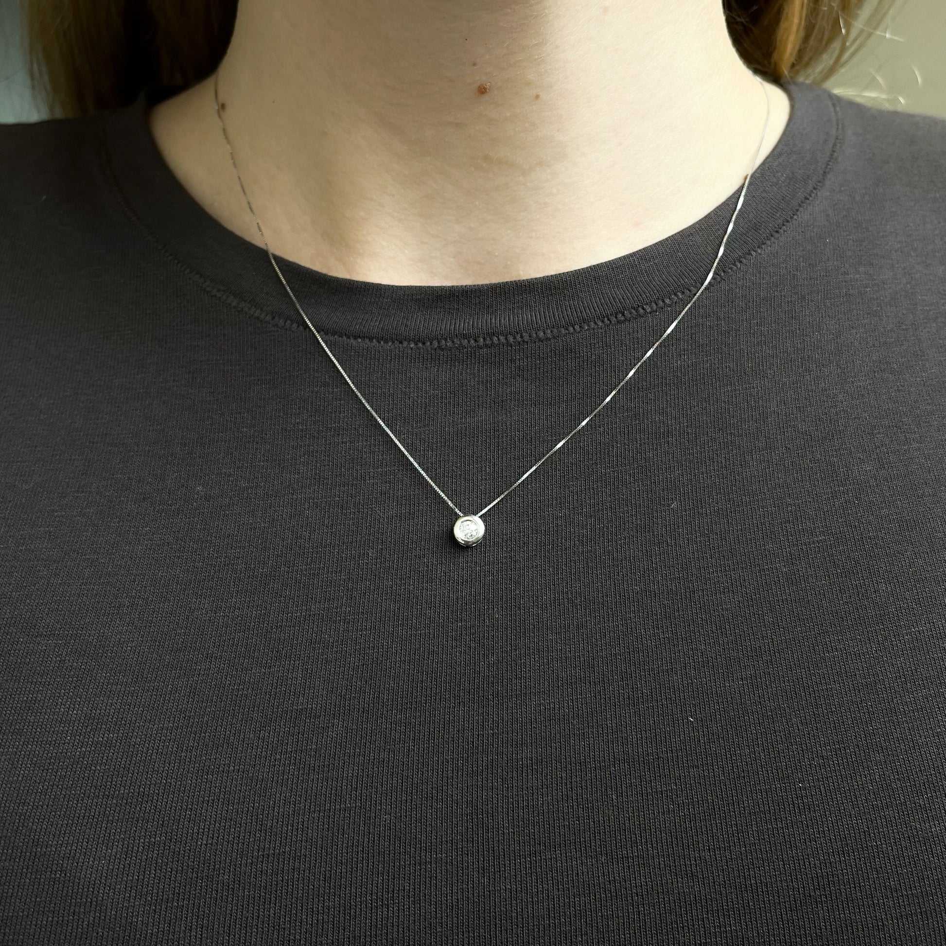 Cadena y Colgante elaborados en en Oro Blanco o Amarillo con Diamante Creado y montura redonda.