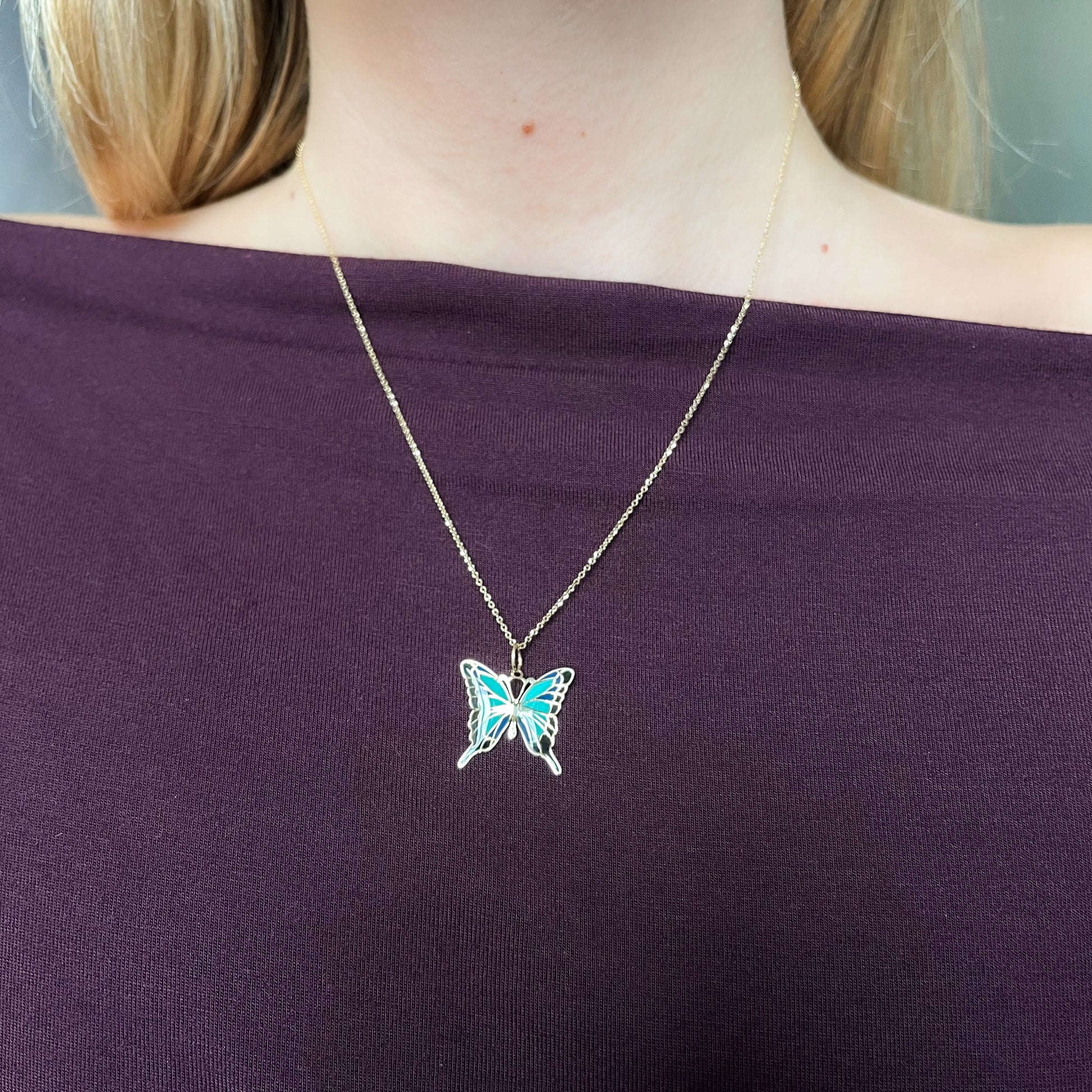 Colgante Mariposa Azul Danaus en Oro Amarillo de 9 Kilates