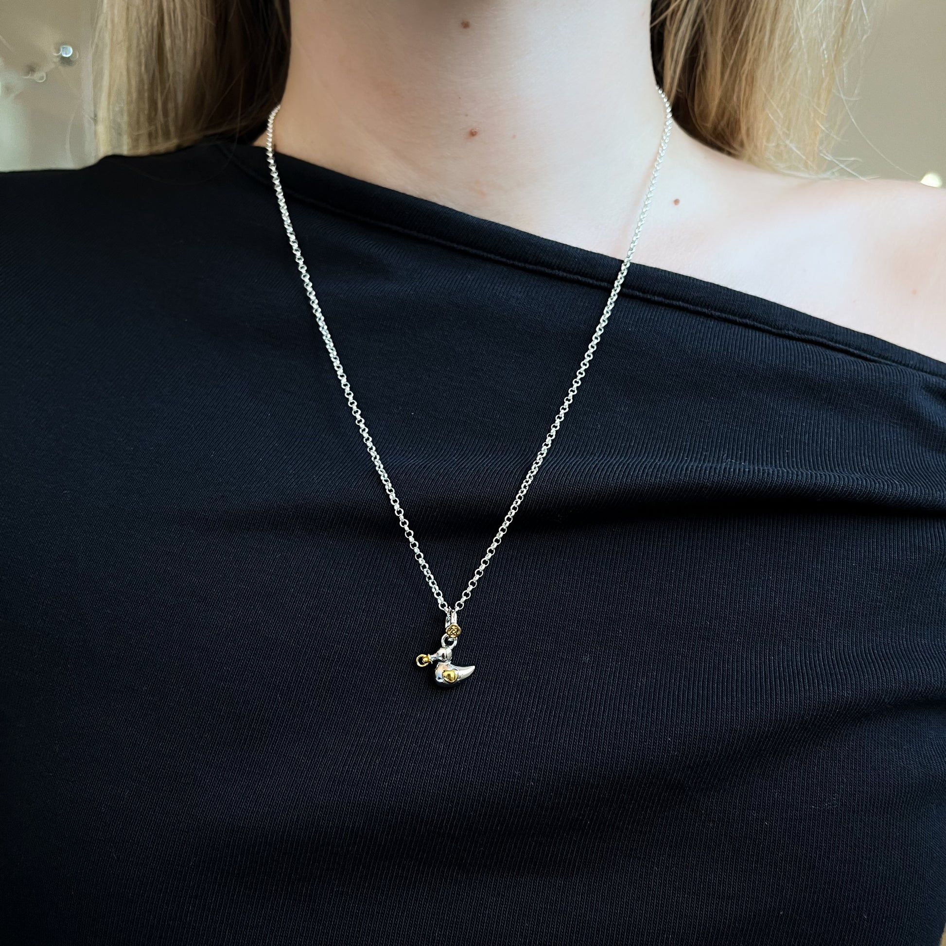 Este elegante colgante de patito bebé en plata personalizable es el accesorio perfecto para el Día de la Madre.