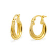 Conjunto de Cadena y Colgante con Pendientes, elaborado en Oro Amarillo. El colgante, con una elegante forma de nudo, y los pendientes de aro grabados, ofrecen un diseño sofisticado y lleno de estilo, ideal para resaltar tu look con un toque de distinción.
