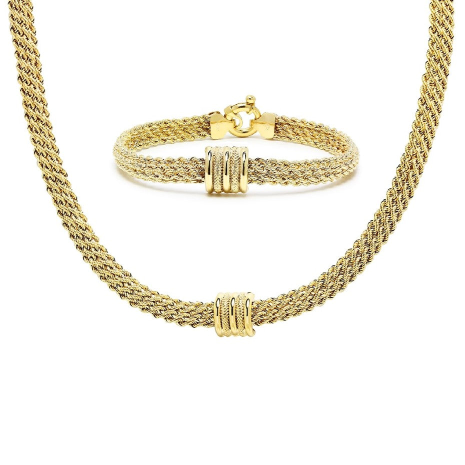 Conjunto Kejari Cadena y Pulsera en Oro Amarillo 9 Kilates
