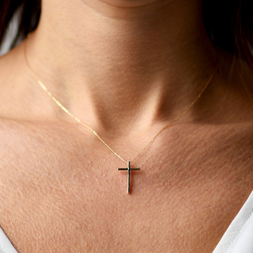 Cruz Lisa Cuadrada (12x18mm) en oro Amarillo 18 Kilates