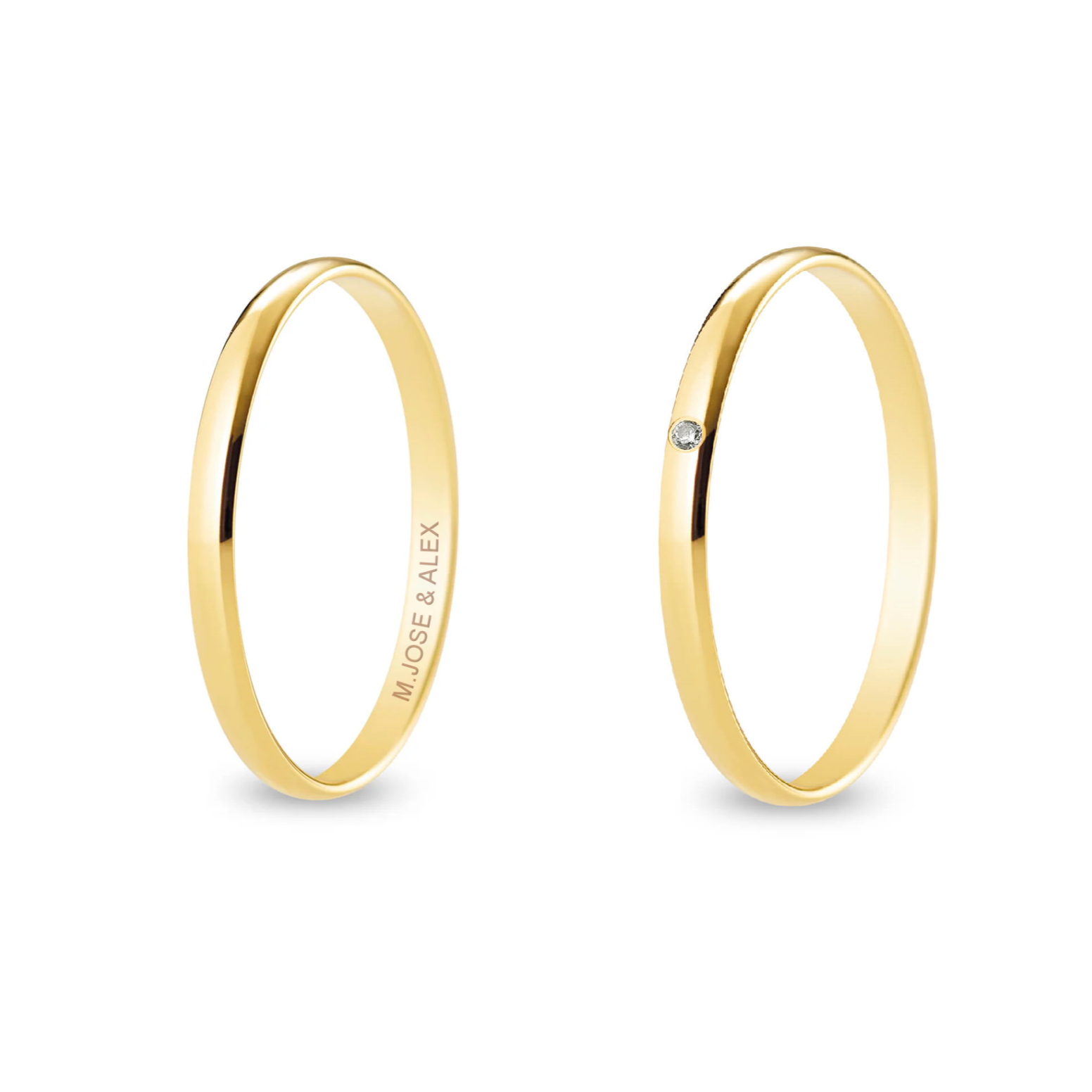 Pareja de Alianzas de Boda Ani de Media Caña en Oro Amarillo