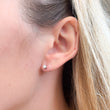 Pendientes elegantes con 2 diamantes que suman 0.20 ct (H-SI) engastados en platino de alta calidad. Su diseño de 4 grapas asegura un brillo elegante, perfectos para complementar cualquier look sofisticado.