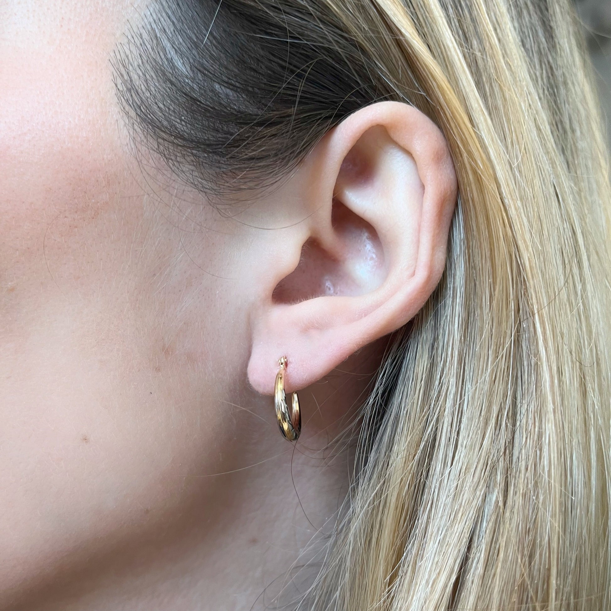 Pendientes Aro Diamantada 10 mm Oro Bicolor en 9 Kilates
