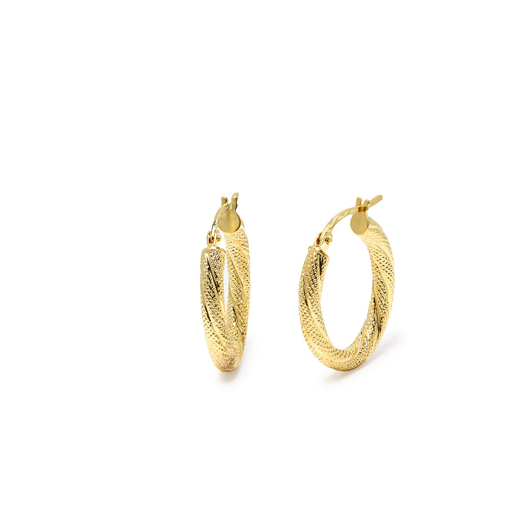 Pendientes de Aro Ovalados Rizados y Grabados 15 mm en Oro Amarillo 9 Kilates