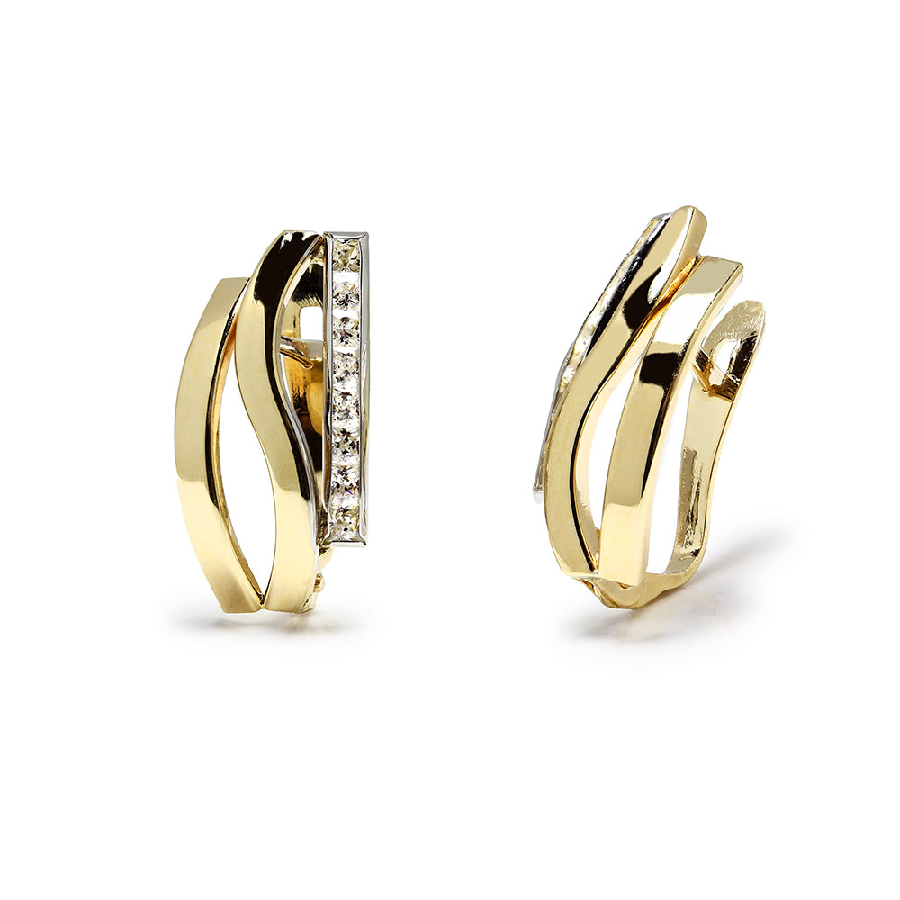 Pendientes de Bandas en Oro Bicolor 9 Kilates y Circonitas