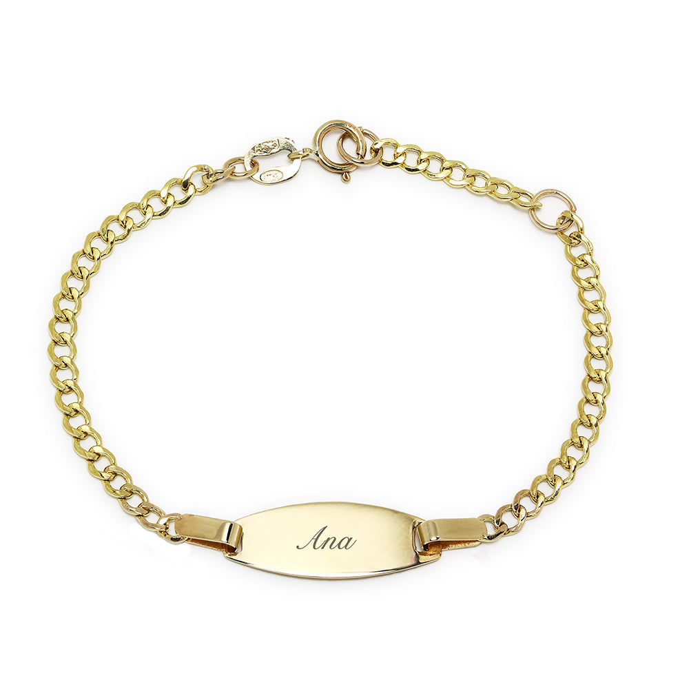 Pulsera Bebé Nomeolvides Barbada Ovalada en Oro Amarillo 9 Kilates