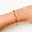 Pulsera con perlas y medalla de la Virgen, elaborada en acero bañado. Un diseño delicado que une fe y elegancia. ✨🙏
