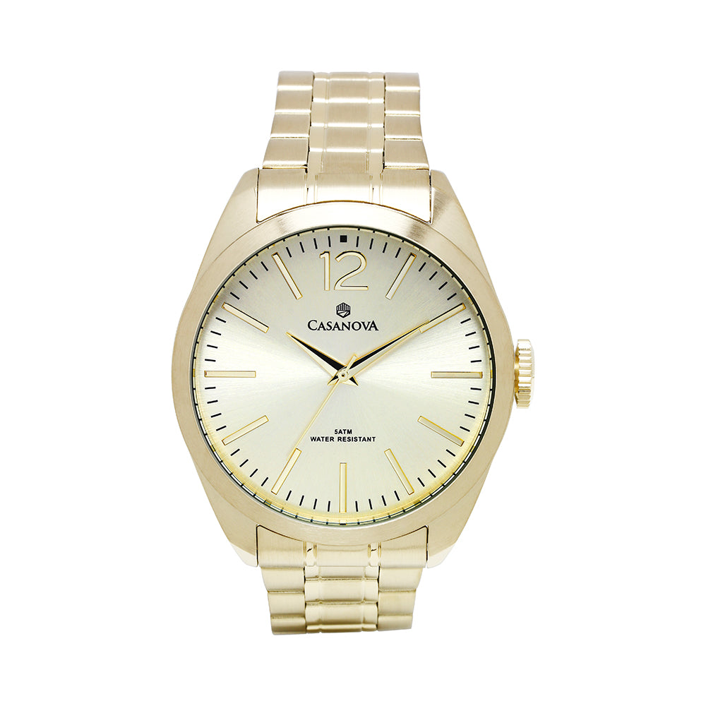 El Reloj Hombre Casanova Classic – Gold Dial combina estilo y sofisticación en un diseño que no pasa desapercibido.