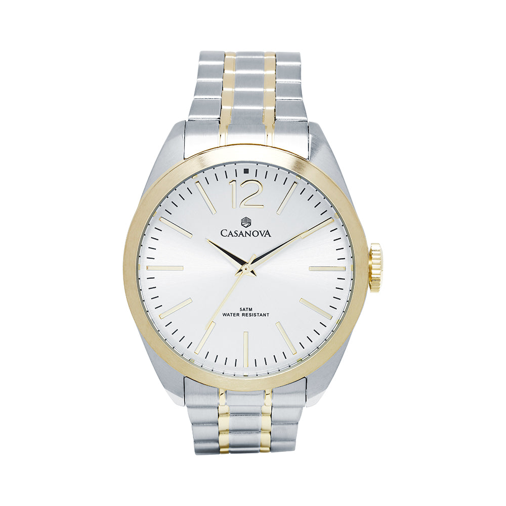 El Reloj Hombre Casanova Classic – Silver Dial con Correa Bicolor combina elegancia atemporal con un estilo moderno y sofisticado. Su esfera plateada con borde dorado aporta un contraste elegante, mientras que la correa bicolor en acero combina ambos tonos para un acabado distintivo y versátil, ideal para cualquier ocasión